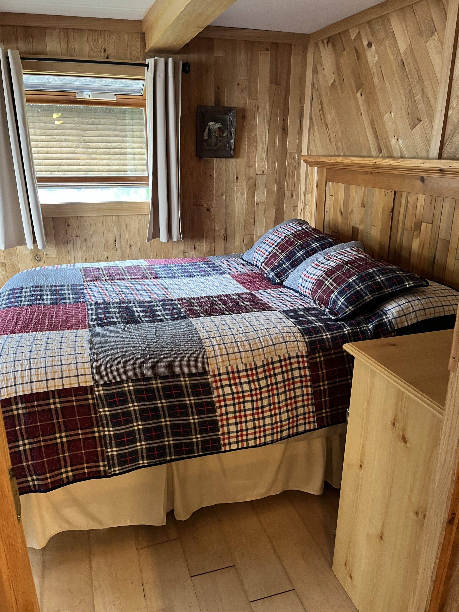 This quaint cabin has an open concept kitchen/living/dining area with two private bedrooms and one bathroom. Central air will help keep you comfortable during those hazy summer nights or the gas furnace to take the chill off in the fall mornings.